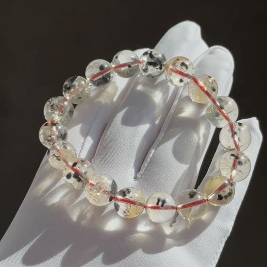 11mm, Certified Rare Find Natural Top Grade Citrine with Hollandite Beads Bracelet, Citrine Hollandite Quartz, 巴西天然黄水晶海胆手串