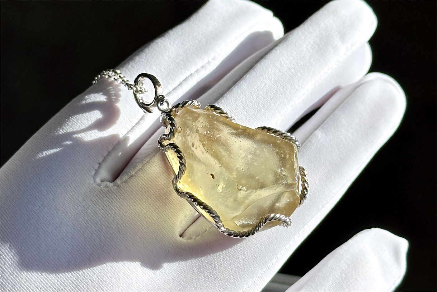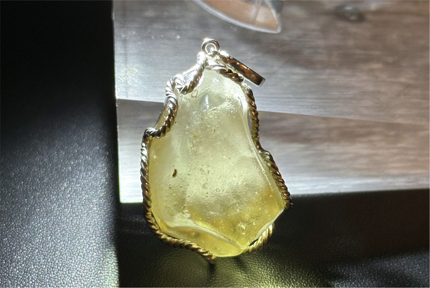 16.216Grams, Natural Authentic Libyan Desert Glass Tektite Silver Wrapped Pendant, Raw Libyan Desert Glass Pendant, 天然利比亚黄金陨石原石吊坠