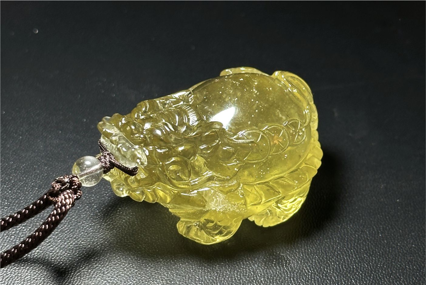 纯天然非人造满流光,透体浓金戒面级别的利比亚陨石,手工雕刻龙龟吊坠