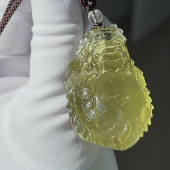 50.154 grams, Collector's Grade, Natural Authentic Libyan Desert Glass Tektite Hand Carved Dragon Turtle Pendant | High-Grade Tektite | Protective Amulet, 天然收藏级浓金利比亚陨石手工雕刻龙龟吊坠