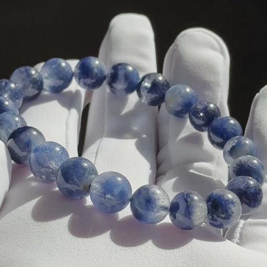 Known as the "Angel's Feather" in the crystal world, natural Dumortierite contains fine blue needle-like inclusions that resemble layered feathers when viewed under strong light. This bracelet features a deep, rich blue—an uncommon shade for natural, non-dyed Dumortierite. The stone is finely structured with excellent clarity, making it a rare and collectible piece.